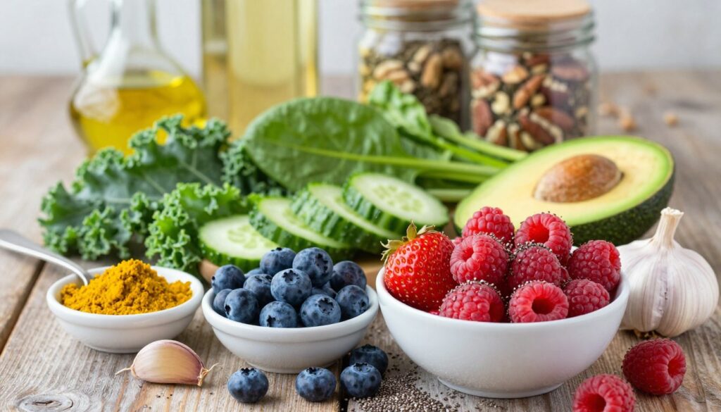 | Anti-Inflammatory Foods | Reduces inflammation | Berries, Fatty Fish, Leafy Greens |